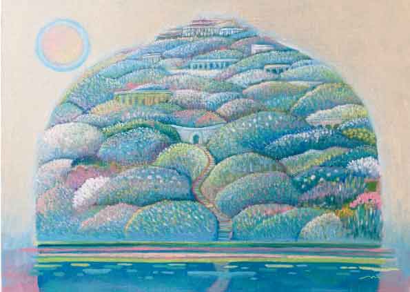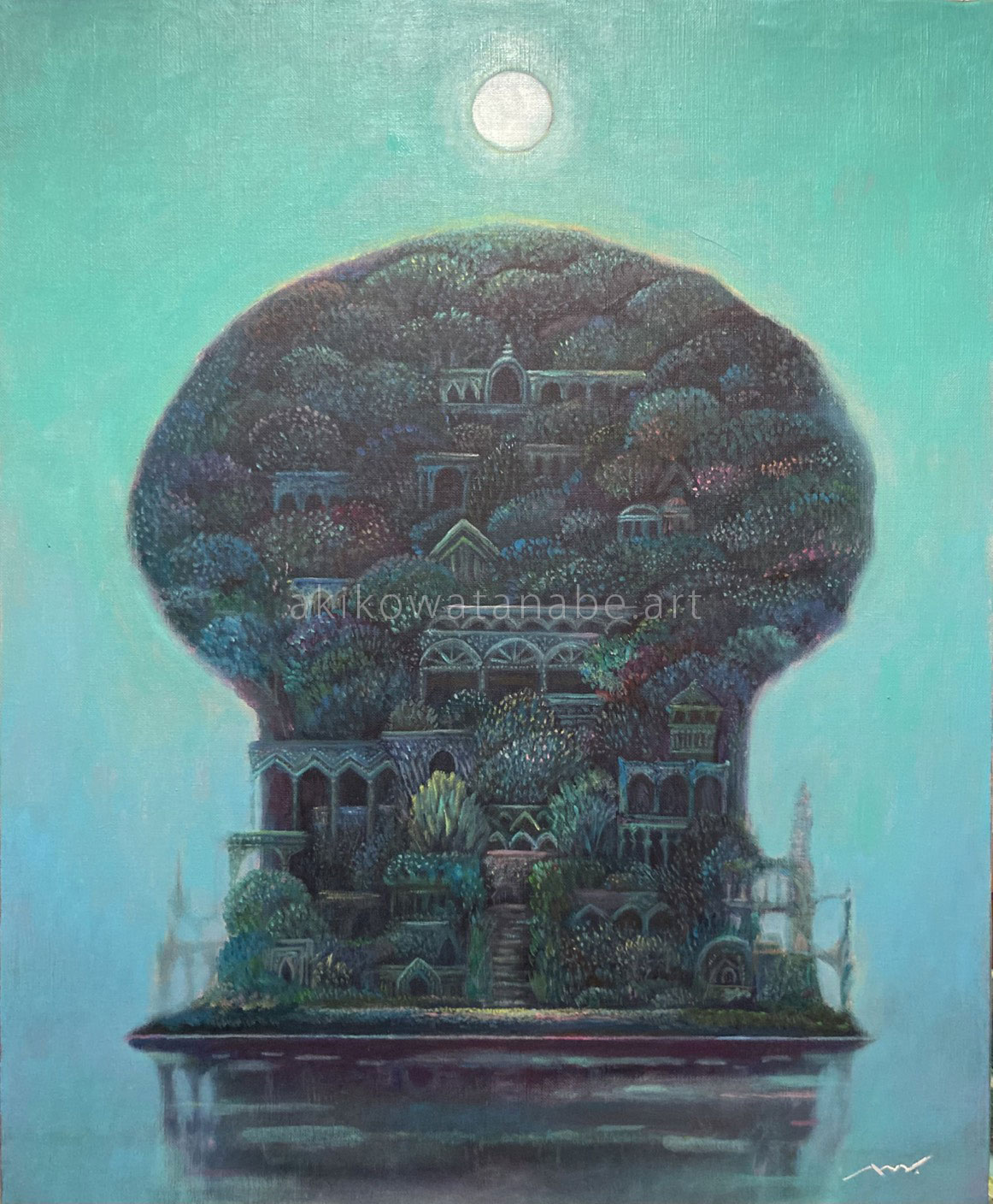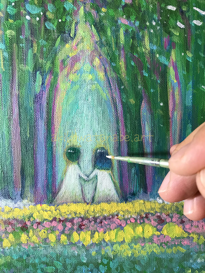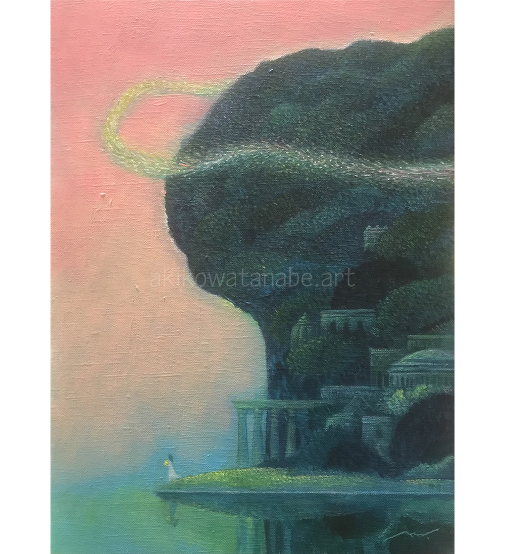 渡辺明子の作品です。森、水辺、塔、花、旅をキーワードとした夢のようなファンタジー世界を、繊細なタッチで描きます。